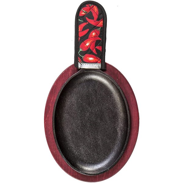 セット内容:25.4x17.8センチ、楕円形キャストアイロングリドル、木製ベース、ハンドルホルダー、レシピカード