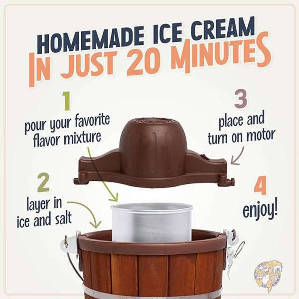 ・自家製アイスクリームを20分で作ります。強力な電気モーターがすべての撹拌と作業を行います。激しい撹拌や手作業は必要なく、モーターが所定の位置にロックされて安全にお使いいただけます。