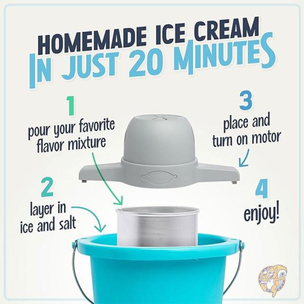 ・自家製アイスクリームを20分で作ります。強力な電気モーターがすべての撹拌と作業を行います。激しい撹拌や手作業は必要なく、モーターが所定の位置にロックされ安全にご使用できます。