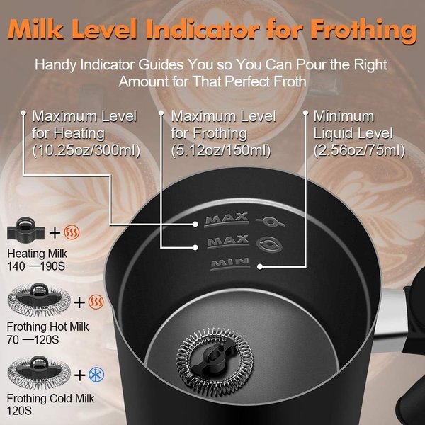 自動ミルク泡立て器は、牛乳を約140華氏に加熱し、お気に入りのコーヒー、ラテ、カプチーノ、ホットチョコレートなどに60?120秒で バリスタレベルの泡を作ってくれます。