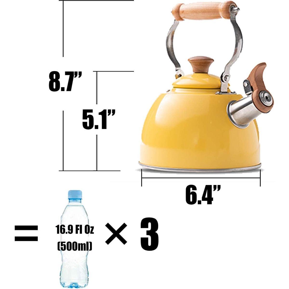 ROCKURWOK 木材ハンドルやかん 1.5L イエロー 笛吹きやかん/ケトル 湯沸かしティーポット ガスコンロ IH対応 ステンレス製 大容量 おしゃれ広口やかんサイズ : 1.5リットル色 : イエロー
